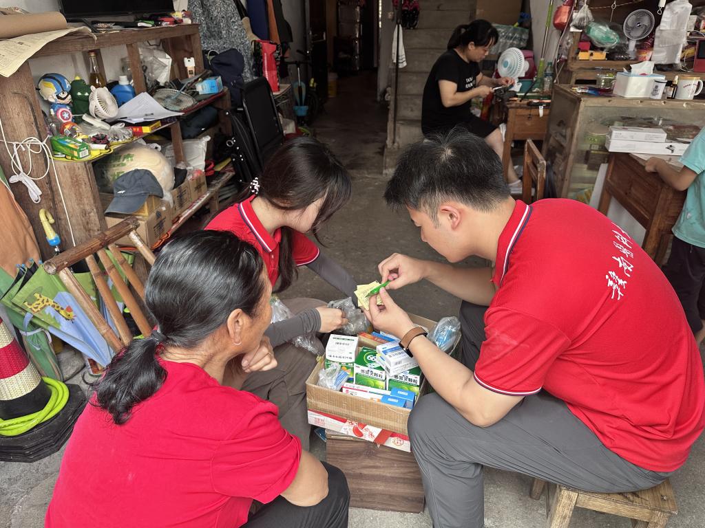 “您家里备有小药箱吗?”“您知道如何清理小药箱吗?”“家庭药箱中的过期药品是如何处理的呢?”……通过入户走访,发现多数居民家里药品摆放凌乱,存在口服药与外用药混合摆放、过期药品未清理等问题。实践队员随即通过“归一法、精选法、分类法”等六个提示帮助村民逐一检查药品保质期,处理过期药品,对临期药品做好标签提示,对内服外用药品分类存放,向村民详细科普家庭药箱管理,常备药品清单及存放原则。6天来,实践队共走访300多户家庭,帮助160个家庭整理家庭药箱,活动受到广大村民的热烈欢迎和一致好评。