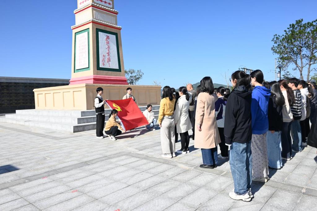 龙南市革命烈士纪念塔前,在庄严肃穆的氛围中,师生党员重温入党誓词,回顾入党初心。