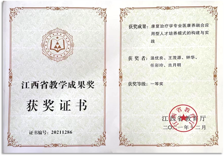 一系列标志性成果随之涌现:一是育人质量显著提升。构建了“三引+三进+三创”的赣医康复育人模式,医康养融合应用型人才培养获江西省第十七批高等教育(本科层次)教学成果奖一等奖;率先全面推进“2+2”求新班创新型人才培养,打造联合培养样板;学生荣获国家级、省级专业技能竞赛奖项37项;连续五年以“一号文件”推进就业工作,成效显著。二是师资队伍建设加强。专任教师博士化率不断提升,实现国家级教指委成员“零的突破”,多名教师在省级以上学会任职,荣获全国物理治疗科普大赛一等奖1项、全国第九届假肢矫形制作大赛一等奖1项、江西省康复医学会教学创新大赛比赛一等奖2项、二等奖1项、三等奖1项。三是学科科研跨越发展。康复治疗学获批省一流专业;成功立项国家自然科学基金等项目;共建智慧康养产业学院,开启产教融合新篇章。四是红医文化深入人心。“红医杯”微马跑等品牌活动参与逾万人次,“体医融合”特色鲜明,师生在多项省级体育赛事中斩金夺银,展现出昂扬风貌。