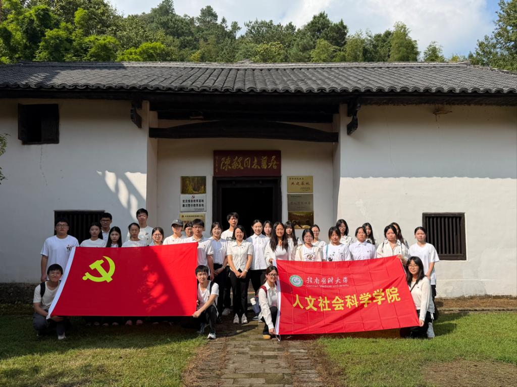 为深化党史学习教育,擦亮学院“红蕴人文”党建品牌,厚植青年学生爱国情怀,9月27日,人文社会科学学院党委副书记毛磊焱带领本科生党支部学生党员代表赴大余县开展红色走读活动。在陈毅旧居现场,毛磊焱以《红色血脉中的抗战精神回响》为题,为学生党员讲授了一堂生动的党课,号召青年学子铭记历史、砥砺奋进,将红医精神与抗战精神深度融合,在新时代展现青年担当。