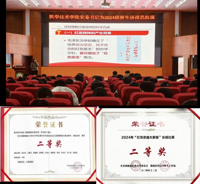 在赣南这片镌刻着革命记忆、激荡着红色星火的沃土上,医学技术学院党委坚持以习近平新时代中国特色社会主义思想为指导,深入传承和弘扬“政治坚定、技术优良、无私奉献、救死扶伤、艰苦奋斗、勇于开创”的红医精神,紧紧围绕学校“红医魂”党建品牌,精心打造“医技之长”红医润心党建育人品牌,着力培育德智体美劳全面发展的新时代医学技术人才,让红医薪火在新时代育人征程中代代相传。