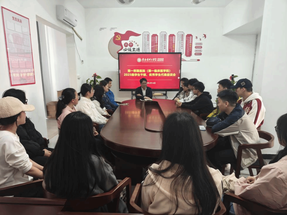 以正确政绩观引领育人实践,用真情实意守护学生成长。 3月14日,第一临床医学院在龙南校区召开学生干部、优秀学生代表座谈会暨师生面对面交流活动。第一附属医院(第一临床医学院)党委副书记肖殿民、学工办辅导员与30余名学生代表围坐一堂,通过座谈交流、餐叙、一对一谈心等多种形式,深入了解学生思想动态,倾听成长诉求,回应学生关切,将关怀与温暖送到学生心坎。