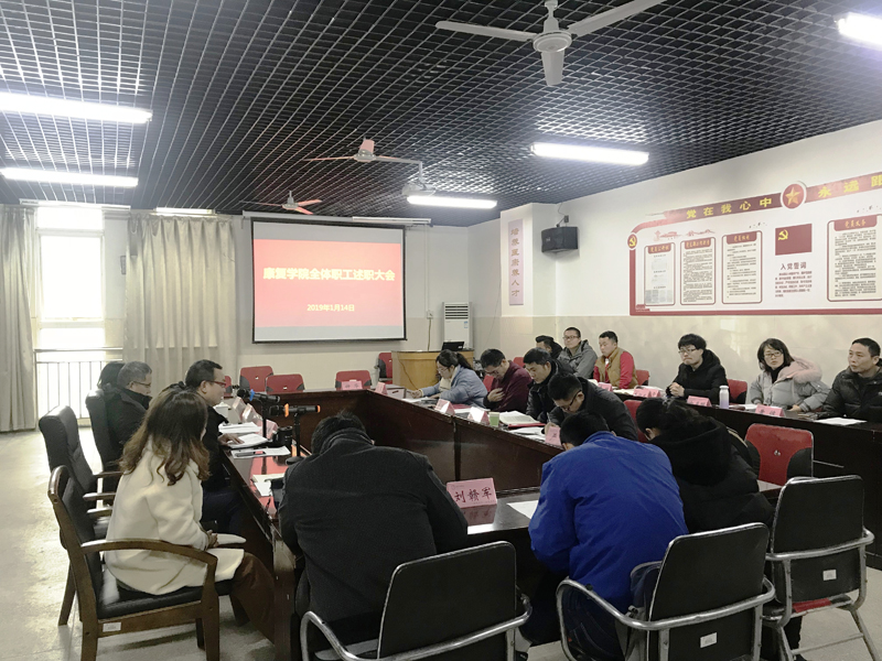 1月14日上午,康复学院举行全院教职工述职大会,该院领导及全体教职工参会。该院副院长温优良主持会议。