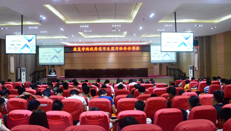 5月23日,康复学院2019年优秀实习生实习分享会在黄金校区图书馆举行。该院党委书记陈建文、副书记叶贞丽出席,全体辅导员、班主任、学生近200人参会。