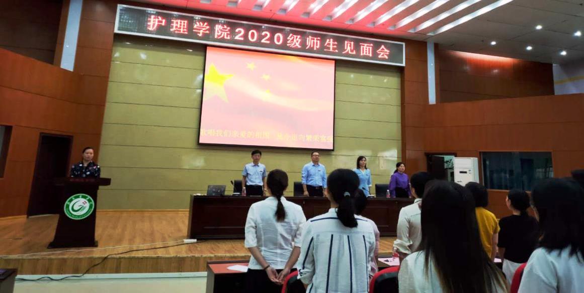 9月18日下午,护理学院2020级师生见面会在黄金校区举行。该院领导陈志远、丁梅、黄明、兰艳莉,全院教师和新生参加。