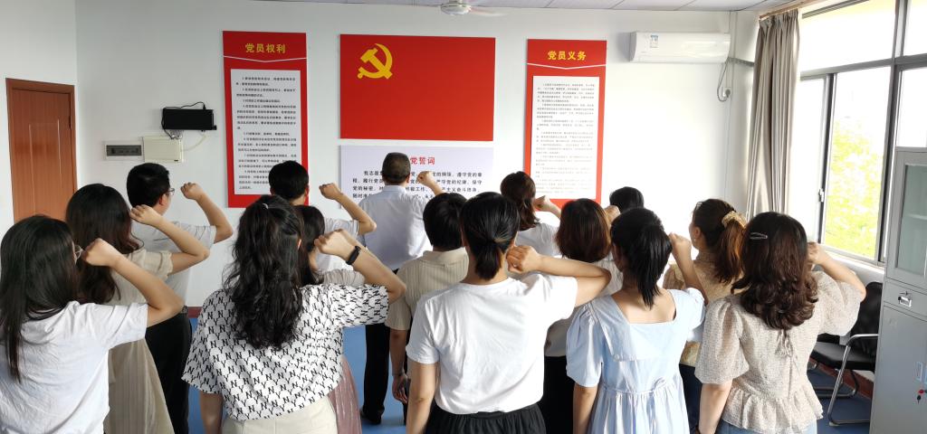 同日,该院学生党支部在黄金校区党员活动室举行了新党员入党宣誓仪式。支部书记对在中国共产党成立100周年之际光荣入党的新党员同志表示热烈祝贺,预备党员代表胡伊婷在表态发言中表示要恪守在党旗下的诺言,不负时代,不负韶华,用奋斗书写最美的青春。