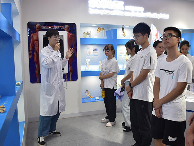 据悉,人体生命科学馆以“生命、科学、健康”为主题,旨在拉近学生与实践的距离,是一个以教学为载体,以科普和体验为特色的医学教育活动基地。展馆由“生命之初”“生命之本”和“生命之光”三个部分组成,以人体解剖学9大系统为主要脉络,辅以大量的塑化标本,使新生可以近距离触摸,增强体验感。