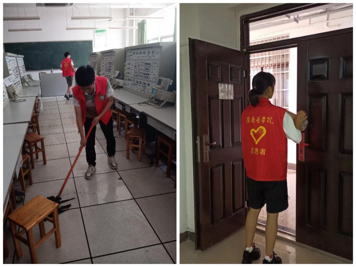 开学之际,该院多次组织团员青年志愿者在黄金校区第一教学楼实验室开展志愿清扫活动,清洁实验室电脑等器材上的灰尘,创建良好的学习环境。