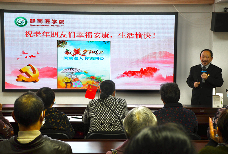 10月24日,公共卫生与健康管理学院到结对共建的章贡区建国路社区开展了“我为群众办实事”党支部进社区志愿服务活动。该院党委书记范启兰,院长黄诚,各党支部书记和师生党员、入党积极分子以及社区部分老人60余人参与。