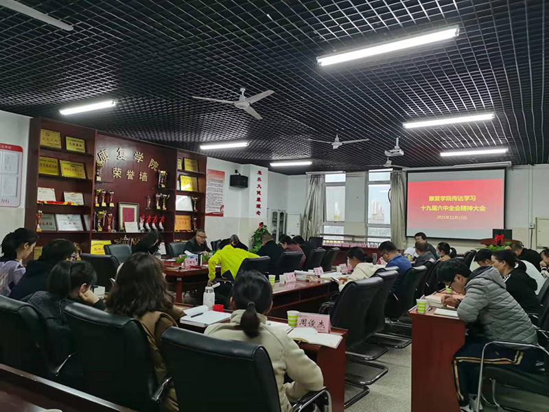 11月15日下午,康复学院在康复楼召开全院职工会议,传达学习党的十九届六中全会精神。全院教职工和20名学生党员代表参会,该院院长温优良主持会议。