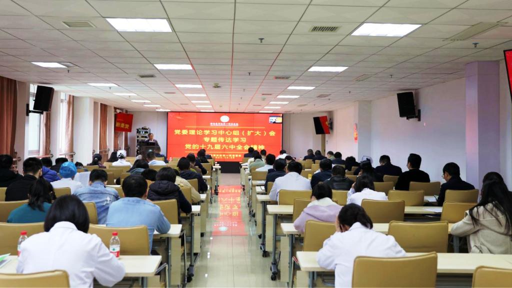 会上,一附院党委副书记徐小军传达了党的十九届六中全会精神。邹晓峰传达了学校党委书记李恭进在全校干部会议上的讲话精神,并结合该院重点工作就贯彻落实好党的十九届六中全会精神作了安排部署。