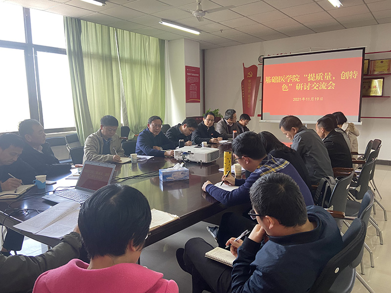 研讨会上,黄东就开展“提质量•创特色”研讨的意义、省里支持有特色专业发展的政治环境、“十四五”规划、学校距离博士授予单位差距以及如何做好“四定”工作展开分析,要求学院对标对表、找准差距、紧跟潮流并抓紧工作落实,以达到“提质量•创特色”目标要求。刘志平和王烈峰就基础医学院目前科研中存在的问题以及如何增强团队协同能力,提高科研成果提出了意见建议。