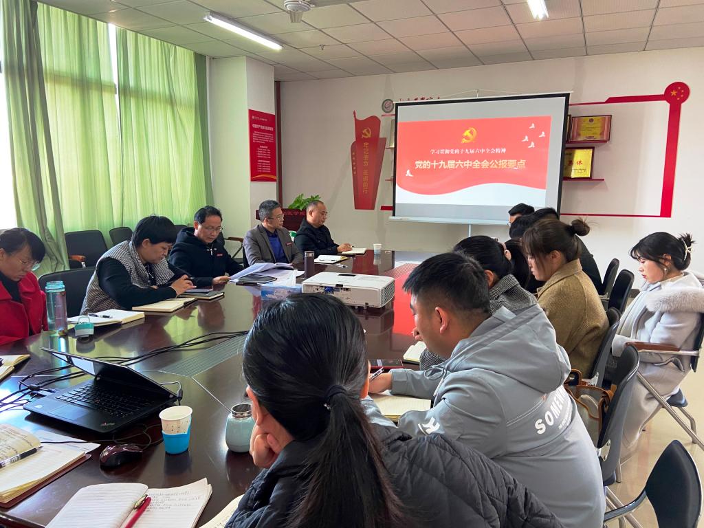 12月1日下午,基础医学院党委书记颜剑宣讲十九届六中全会会议精神,该院全体辅导员、班主任、支部书记以及办公室人员参会。