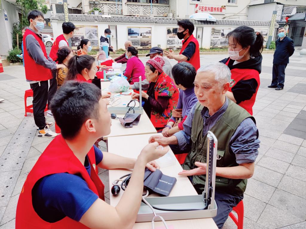 3月4日上午,12名志愿者前往钓鱼台社区开展便民义诊活动,为社区居民测量血压、康复推拿等,并向社区居民开展健康知识科普和反诈骗知识宣传,全面助力文明社区建设,受到居民一致好评。