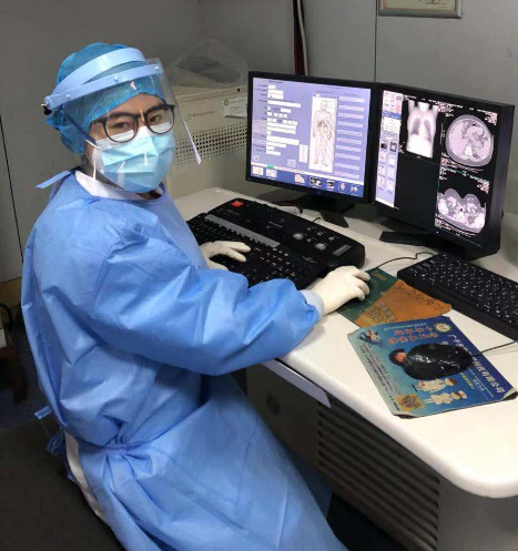 校友艾俊峰毕业后在中国医学科学院肿瘤医院深圳医院工作,参与疑似患者的影像检查。