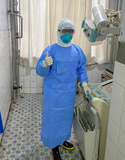 艾俊峰及同事利用胶片自制防护器材以应对防护物资缺乏的问题