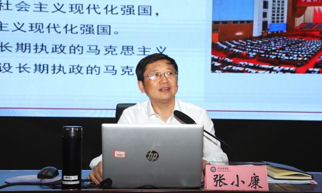 张小康从“全面学习领会习近平新时代中国特色社会主义思想的科学体系”“把学习贯彻习近平新时代中国特色社会主义思想不断引向深入”“着力用习近平新时代中国特色社会主义思想推动学校高质量发展”等三个方面阐述了习近平新时代中国特色社会主义思想的主要内容,并就如何贯彻落实提出了具体要求。