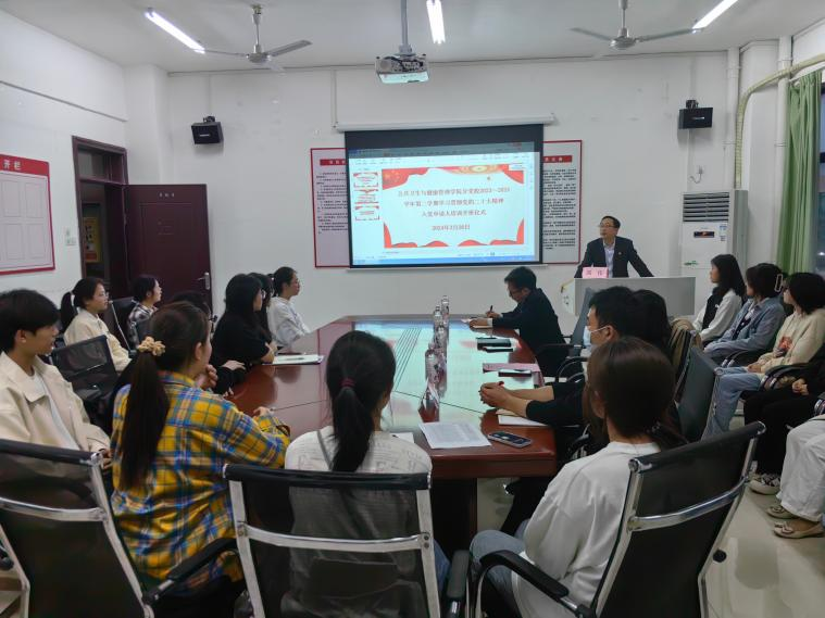 3月26日晚,公共卫生与健康管理学院在黄金校区举行了2023-2024学年第二学期入党申请人培训开班仪式暨培训第一讲。该院党委书记邱伟、学生党支部书记及入党申请人共20余人参加。