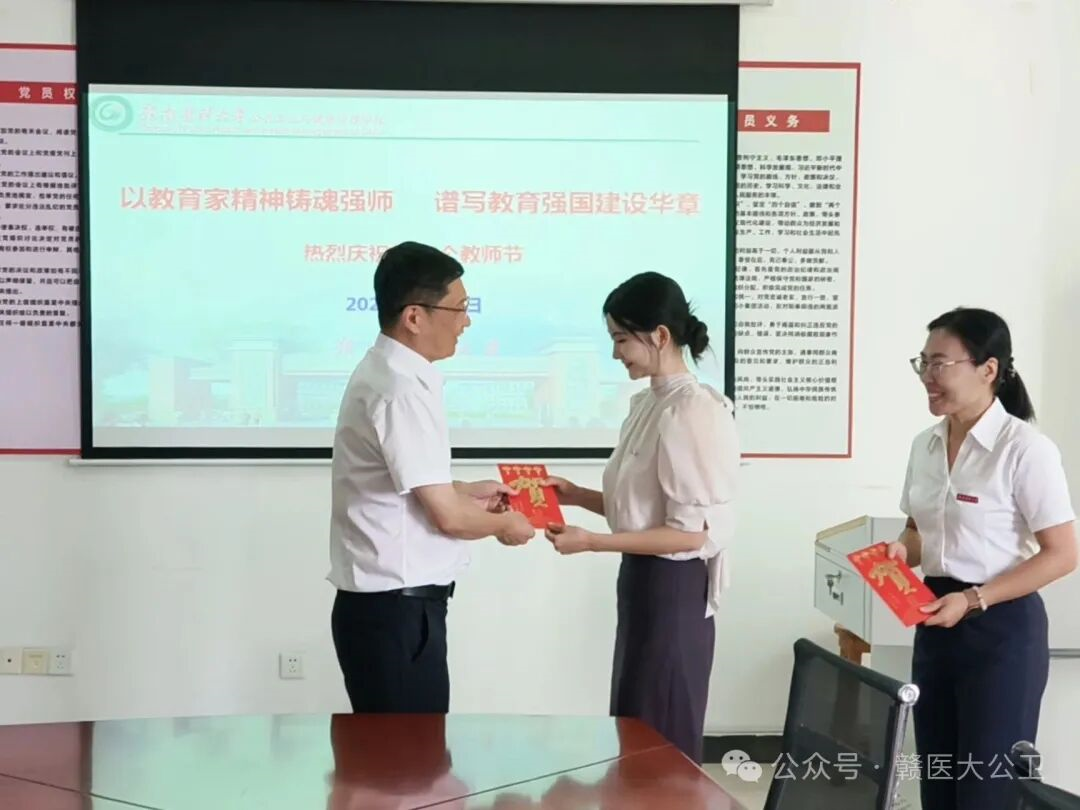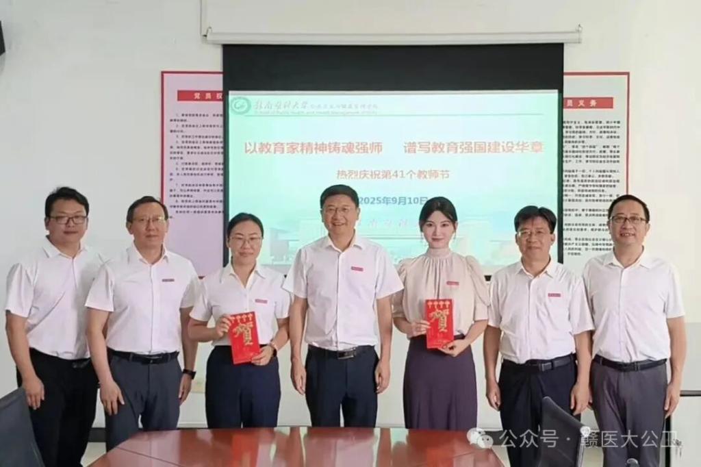 2025年9月10日上午,在第41个教师节来临之际,学校党委书记、校长张小康莅临公共卫生与健康管理学院,亲切看望慰问学院优秀教师代表林芬老师和卢意老师,并通过她们向全院教职员工致以崇高的敬意和节日的祝福。学校党委常委、宣传部长廖志平,学校党委办公室、校长办公室、督查室、外事办公室主任黄东以及学院在家领导班子成员陪同。