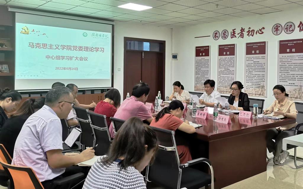 6月16日,马克思主义学院党委书记连璐主持召开理论学习中心组集体学习扩大会议。学校党委委员、学院院长廖志平及全院教职工出席学习会。