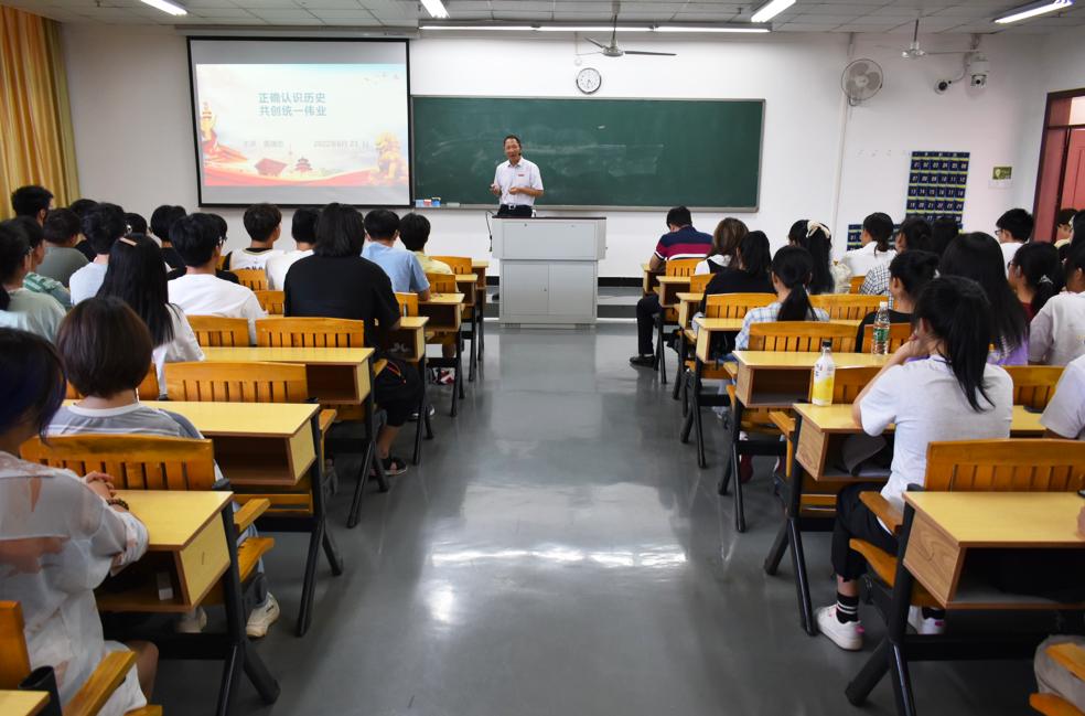 6月23日下午,学校党委委员、副校长黄瑞忠以“正确认识历史,共创统一伟业”为主题,给人文社会科学学院2021级全体学生上了一堂精彩的专题思政课。
