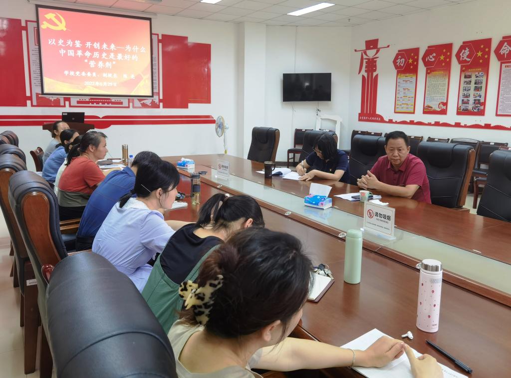 6月29日下午,学校党委委员、副校长陈亮在黄金校区图书馆,以《以史为鉴、开创未来——为什么中国革命历史是最好的“营养剂”》为题,为机关党委第十九党支部全体党员上了一堂专题党课。