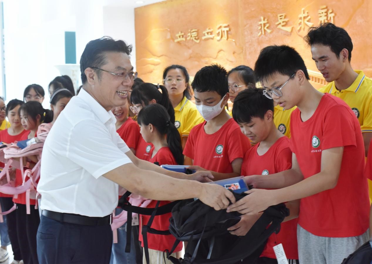 7月4日下午,学校党委副书记曾泽鑫在校史馆看望了我校2022年暑期“小学生进大学堂”主题夏令营全体小营员。