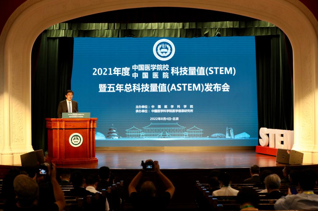 据了解,自中国医学科学院2018年首次提出科技量值(Science and Technology Evaluation Metrics, STEM)的概念以来,STEM评价体系坚持以科技创新质量、绩效、贡献为核心,持续拓展广度深度、科学确定标准、提高数据质量,对我国新发展阶段医学机构提升科技发展质量发挥导向作用。2021年度中国医学院校科技量值覆盖全国110所独立医学院校和设立医学学科的综合大学,中国医院科技量值评价范围包括全国1641家三级医院。2022年,中国医学科学院又首次设立发布了医学院校和医院五年总科技量值(ASTEM),进一步完善评价周期多元化,能够更加真实、综合、稳定、科学地反映机构科研实力,助推医学机构高质量发展。
