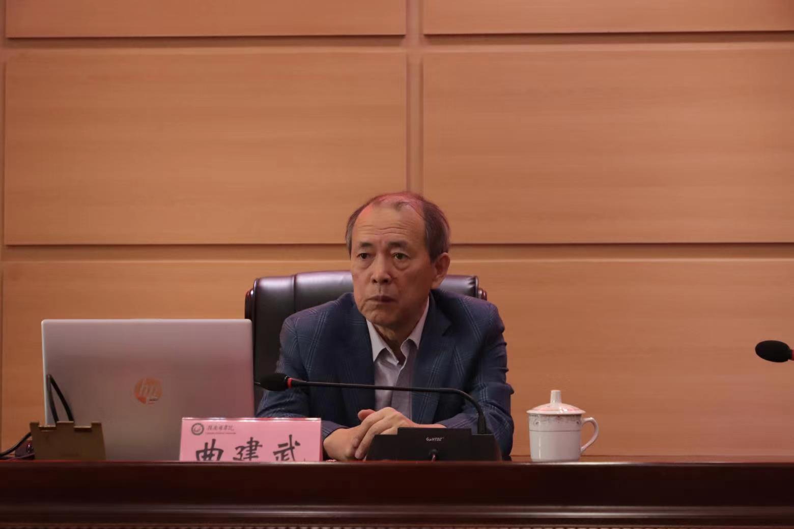 下午,曲建武为学生代表作了一场题为《做担当民族复兴大任的时代新人》的专题讲座,分享了八个关键词:爱国、明辨、刚毅、责任、向善、慎独、好学、健体。他强调,青年学生应爱国,要时刻铭记“入则增长知识和才干,出则服务祖国和人类”;青年学生应明辨,要学会追求真理,明辨是非;青年学生应刚毅,承担起社会和家庭的责任,练就坚毅的品格和百折不挠的精神;青年学生应向善,有德才有知识,关注知识的起跑线,更要关注道德的起跑线;青年学生应慎独,要享受独处,更要热爱集体,学会团结,做一个有爱心的人;青年学生应好学、健体,要将自主学习与终身学习贯穿始终,还要注重锻炼强健的体魄。