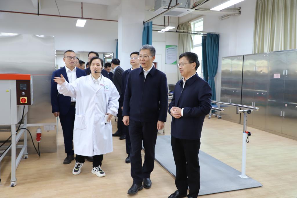 宣讲前,罗小云来到康复学院实训中心、医工融合实践中心调研,了解学校发展、学科建设、人才培养等情况。