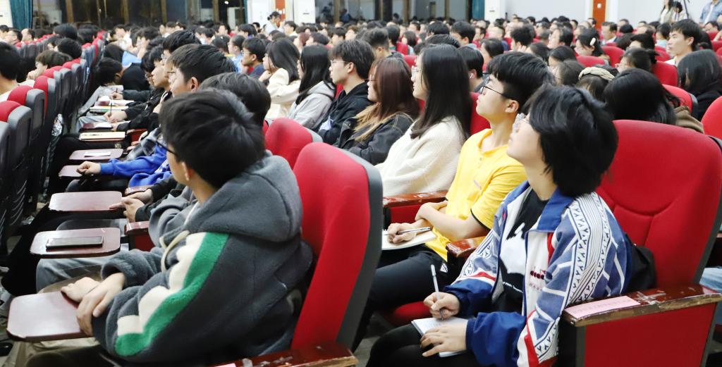 学校各下属党委书记、院长、副书记,机关处室主要负责同志,以及教务处、招就处、校团委全体人员,学生创新创业指导教师,全体学工干部、辅导员,高年级学生代表等420余人一同在现场聆听。