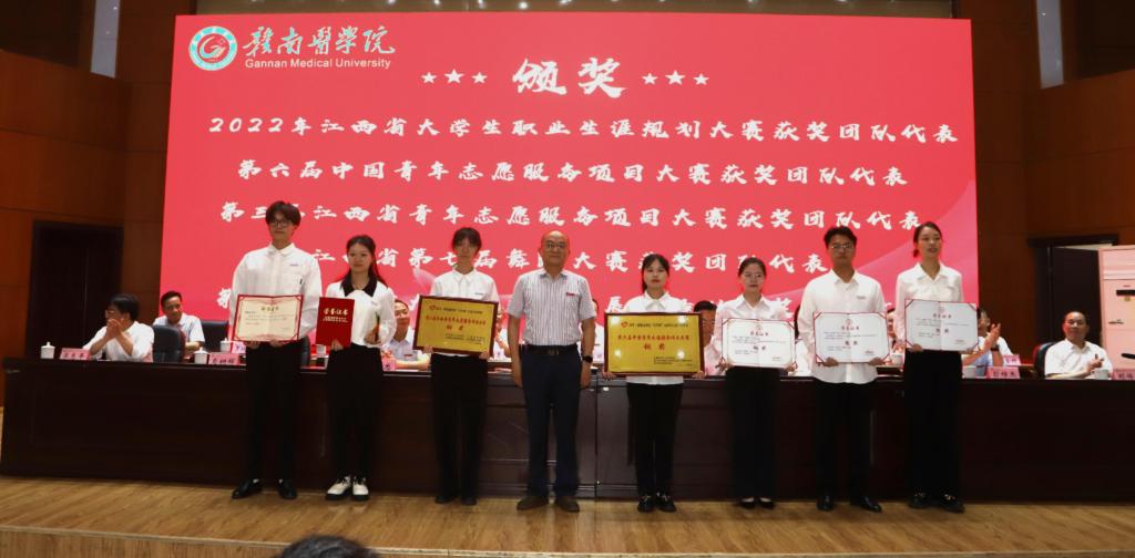 党委副书记、校长张小康指出,过去的一年,是学校团学工作凝心聚力、砥砺奋进、捷报频传的一年。在学校党委的坚强领导下,学校团学组织始终坚持以习近平新时代中国特色社会主义思想为指导,牢牢把握迎接召开和学习宣传贯彻党的二十大精神这条主线,紧紧围绕学校中心工作,以青年大学生理想信念教育为核心,以爱国主义教育为重点,以思想道德建设为根本,以德智体美劳全面发展为目标,在党团和班级建设、学风建设、学生日常事务管理、网络思想政治教育、职业规划与就业创业指导等方面,做了大量卓有成效的工作,为青年学生的成长成才和学校事业建设发展做出了积极的贡献。全体赣医青年学生不负韶华、勤学苦练、脚踏实地、勇于开创,在专业学习、志愿服务、创新创业等方面更是取得了可喜的成绩。