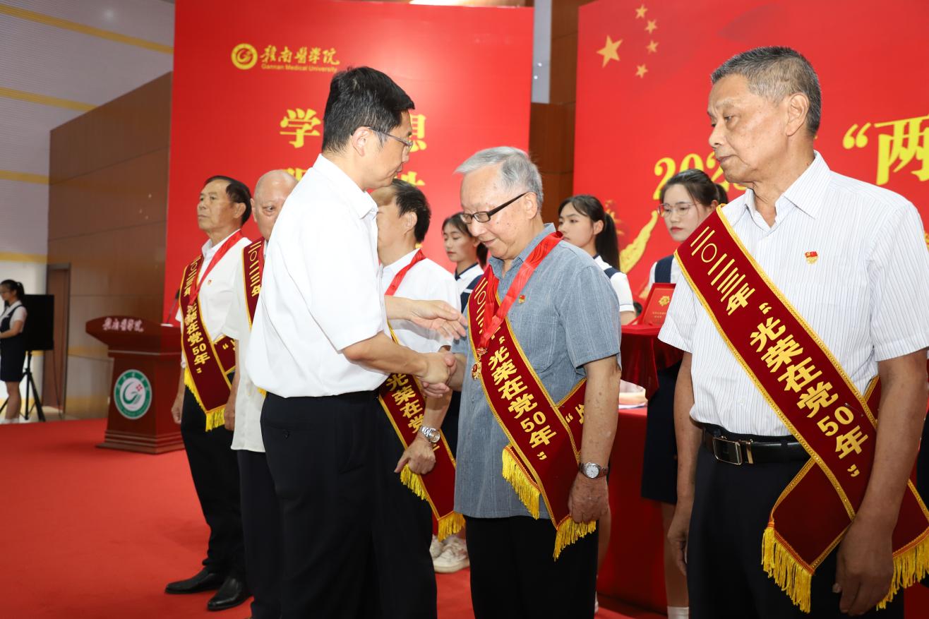 张小康为肖会军、徐庆有、陈方荣、张满功、吴厥才、叶增福6位老同志颁发了“光荣在党50年”纪念。