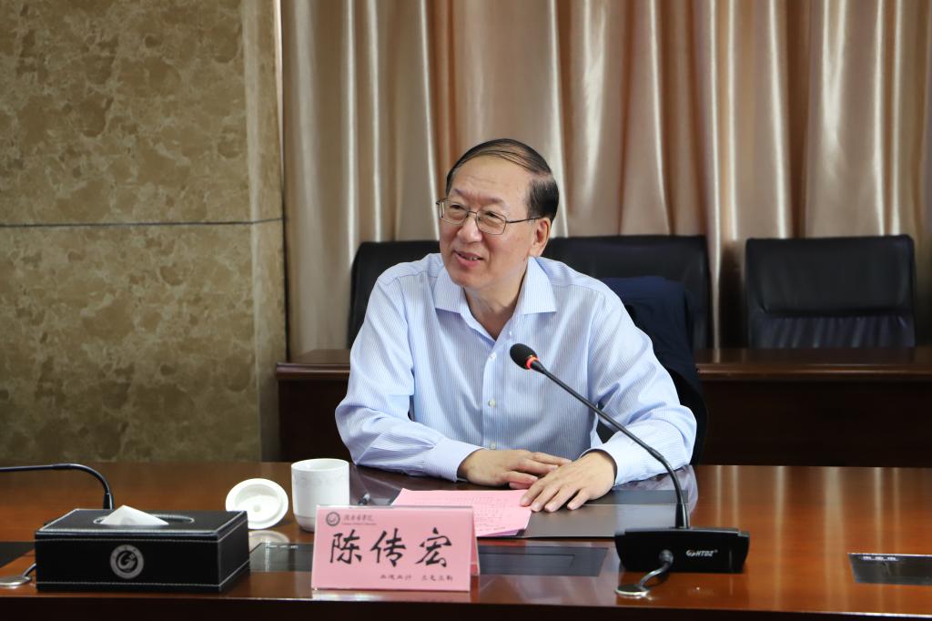 彭维杰对陈传宏一行的到来表示热烈欢迎,并介绍了学校发展情况、办学成效及办学特色。