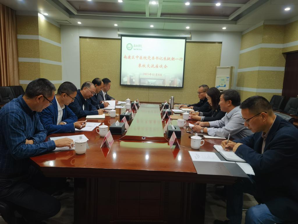 11月8日上午,南康区中医院党委书记朱挺朝、院长彭恭顺一行来校交流临床教学基地创建工作。学校党委委员、副校长盛瑶环出席座谈会。