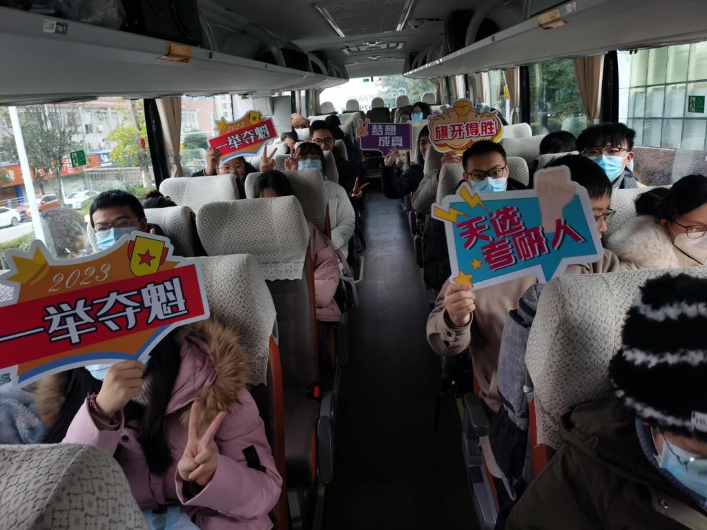 天气虽冷,辅导员老师大清早为考研学生送行,令考生倍感温暖,士气高涨。考研学子纷纷表示:“感谢学校为我们提供暖心的送考车,确保了我们的出行安全,也为我们提供了极大的方便,能够不为行程和严寒而担忧,全身心地投入到考试中,我们定会考取优异的成绩来回报母校”。