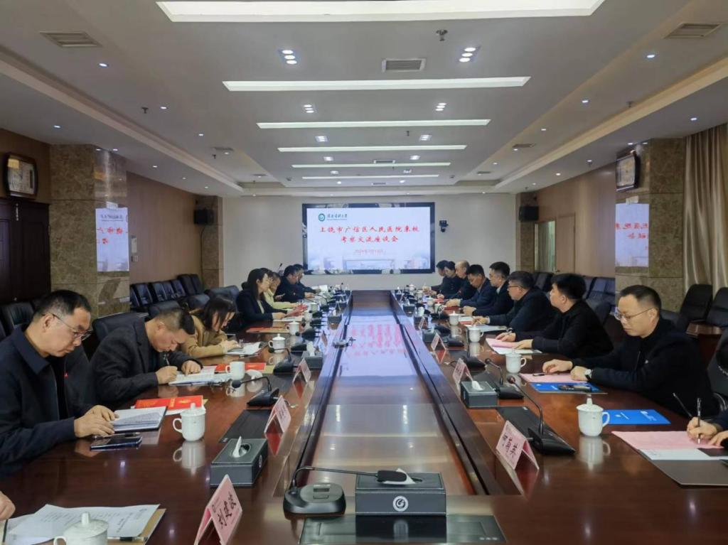 与会人员集中观看了学校宣传专题片,罗中明详细介绍了广信区人民医院情况。