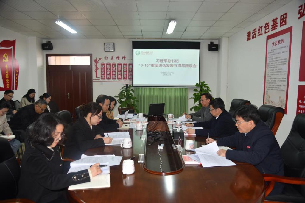 座谈会上,与会人员重温了习近平总书记2019年3月18日在学校思想政治理论课教师座谈会上的重要讲话精神,听取了五年来马克思主义学院总体建设与思政课改革发展情况汇报。