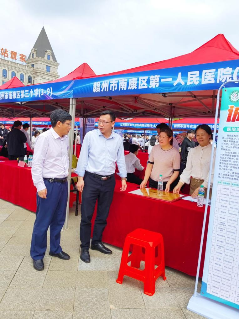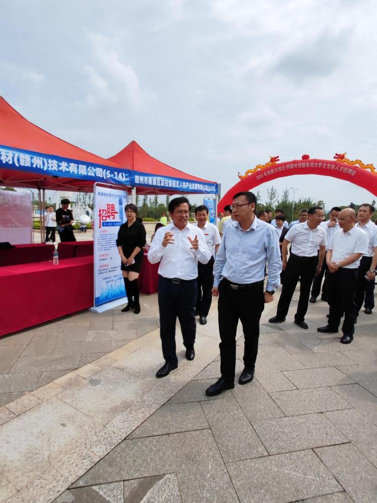 招聘会期间,彭维杰与赣州市委常委、南康区委书记何善锦亲切交谈,双方就进一步加强校地合作、人才培养和毕业生留赣州就业等进行了深入交流。现场走访了格力、美克、爱康等30余家企业展位,开展访企拓岗促就业,推介我校优秀毕业生。