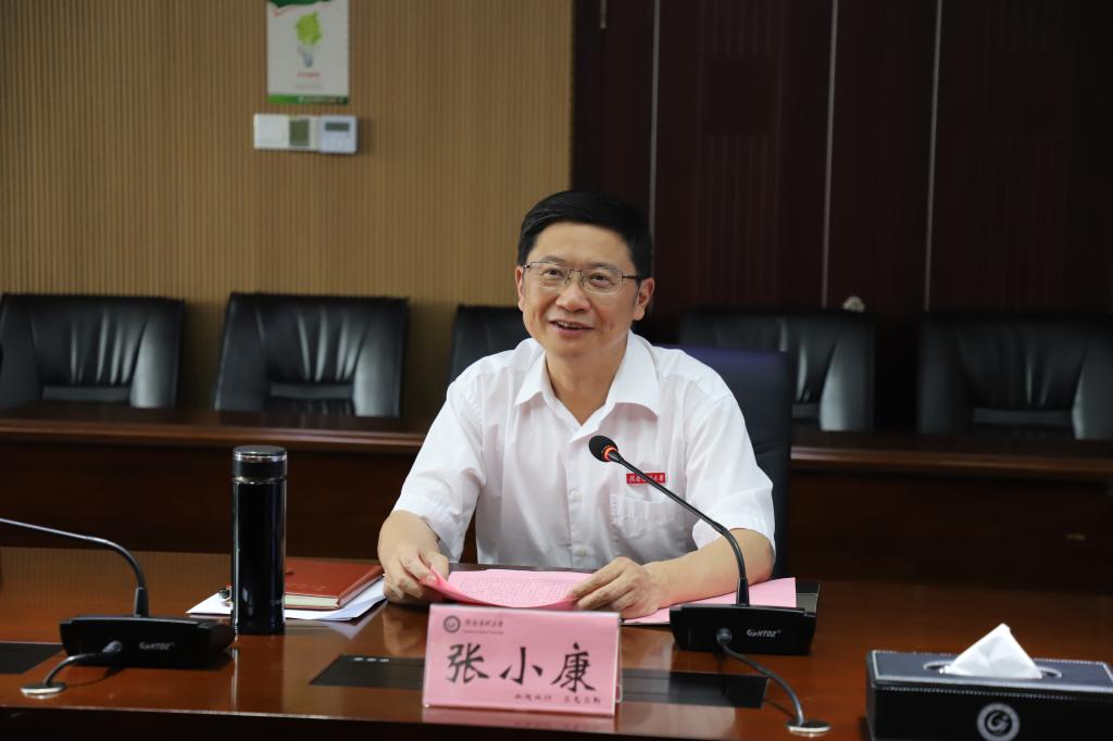 张小康对唐世英一行来访表示热烈欢迎,并介绍了我校校情校史、办学成就、亮点特色。