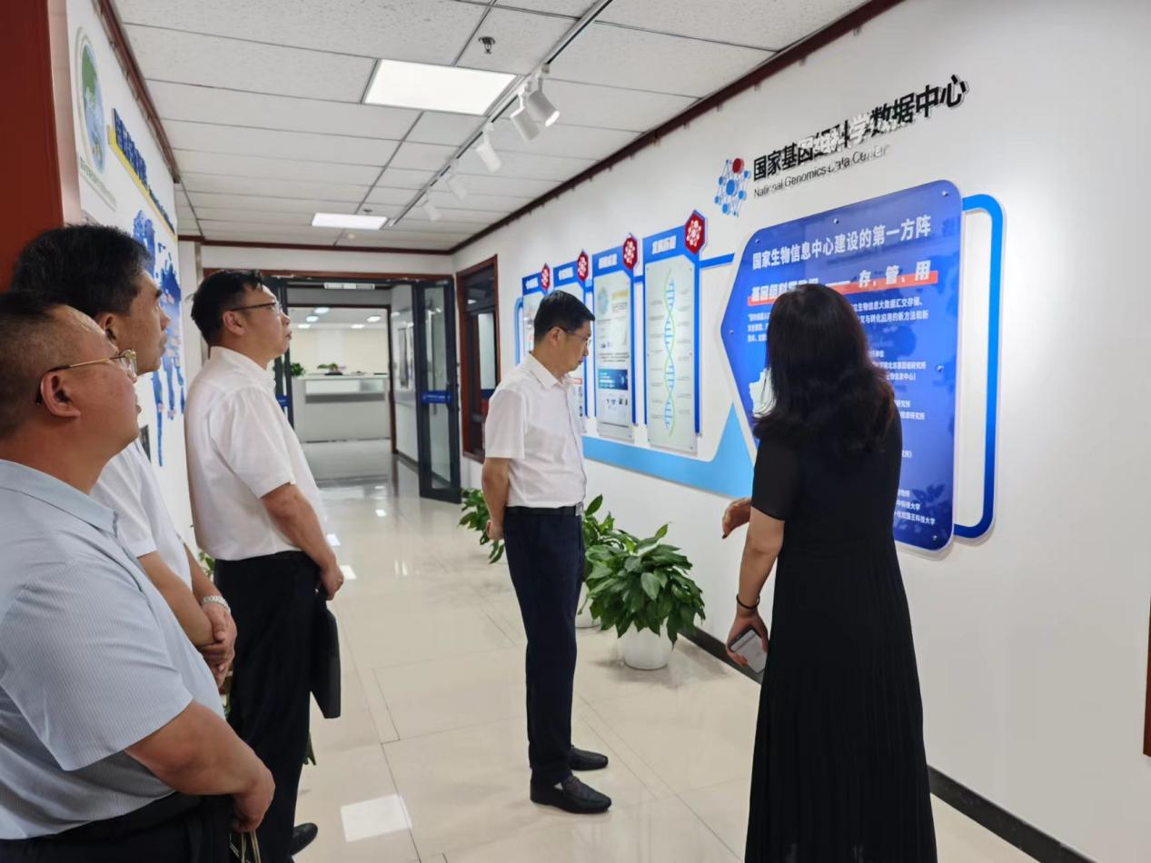 在国家生物信息中心,张小康一行参观了中心沙盘、机房、国家基因组科学数据中心,并进行座谈交流。国家生物信息中心党委书记黄铁军,国家生物信息中心主任杨运桂、副主任赵文明等参加座谈。