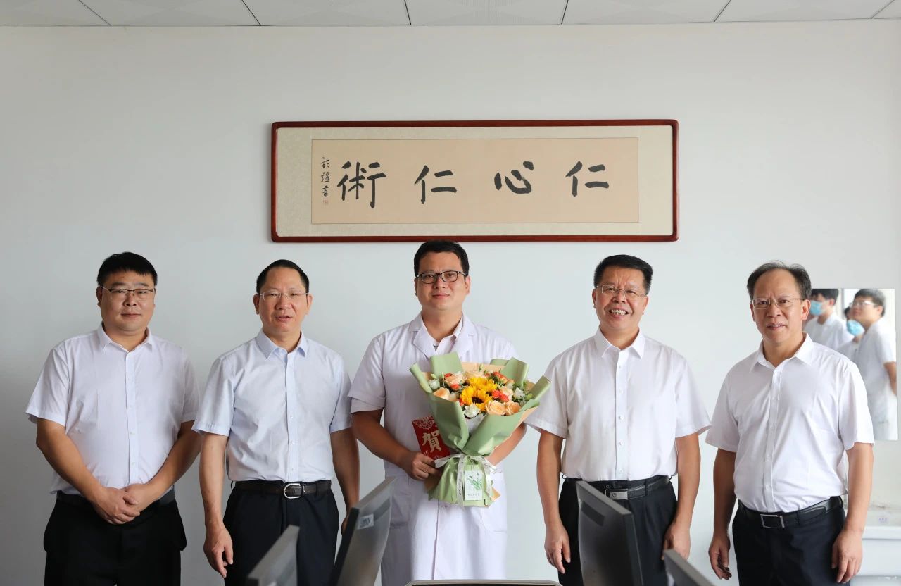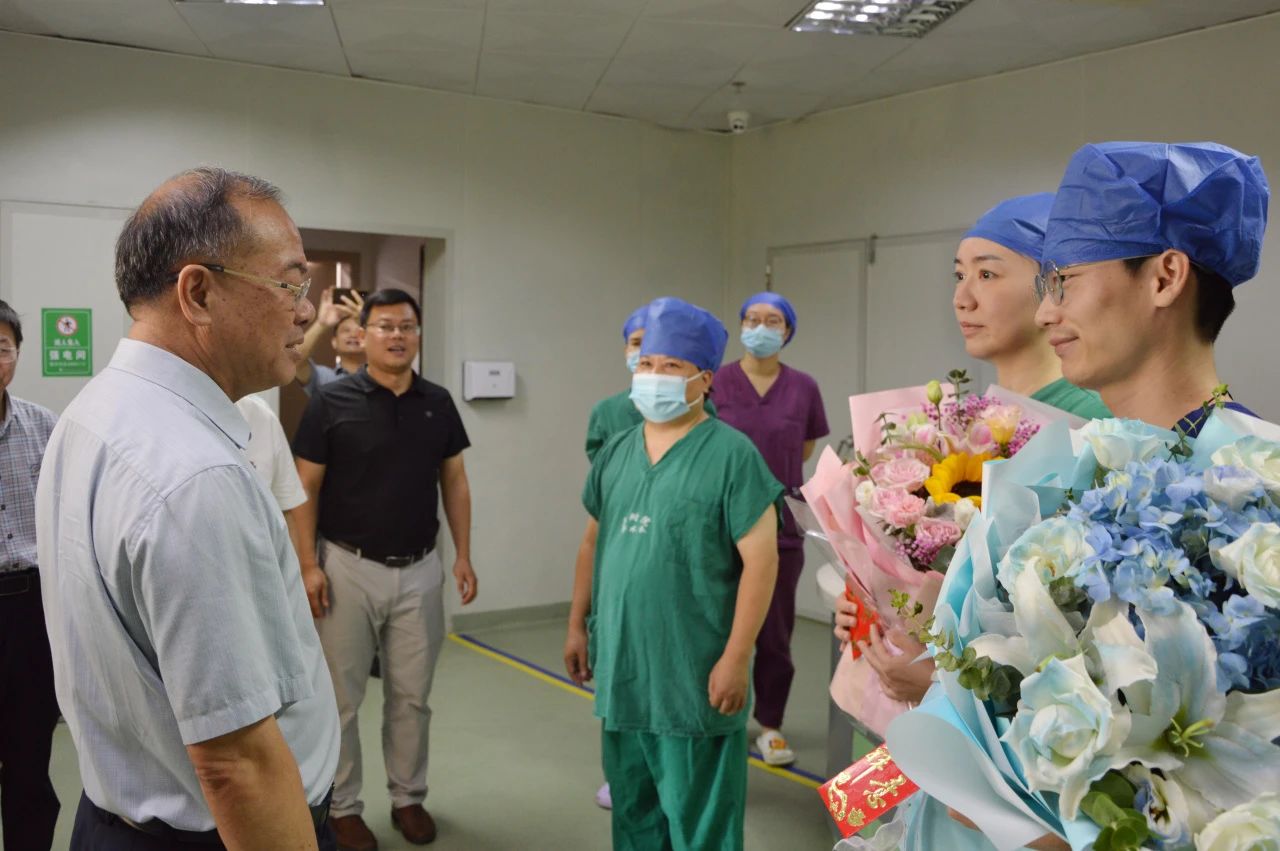“今天是医师节,是你们的节日,我们代表学校向你们致以最崇高的敬意和最深切的感谢。你们用精湛的医术守护着赣南及周边地区人民群众的生命健康,你们是学校、医院的骄傲,也是社会的宝贵财富。”每到一处,廖伟、黄瑞忠都与医师们亲切握手、交谈,送上鲜花和祝福,传递学校党委对医师们的关爱,询问他们的工作和身体状况,感谢他们常年坚守在临床一线,为守护人民健康、推动学校和医院高质量发展所做出的贡献,鼓励他们继续发扬红医精神,修医德、行仁术,用精湛的医术和优质的服务不断增进人民健康福祉。