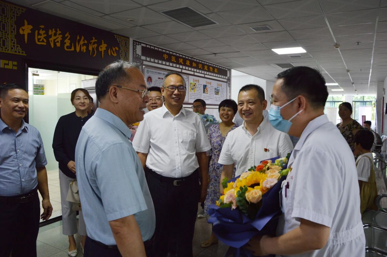 学校党委委员、副校长叶军明在学校党委办公室、校长办公室主任黄东和发展规划与学科建设处处长陶钧的陪同下来到第三附属医院,走访了内二科、麻醉科、口腔科等科室,看望慰问了一线优秀医师代表朱俊江、赖淑凡、张太阳;并与在场的一线医务人员亲切交谈,对他们的辛勤坚守与付出表示感谢,耐心听取他们对学校和医院工作的意见建议,以及个人发展上的规划思考,了解他们在工作生活上的困难需求,勉励他们坚持思想引领,牢记初心使命,持之以恒坚守医者仁心,发扬救死扶伤精神,做人民健康和生命的守护者。