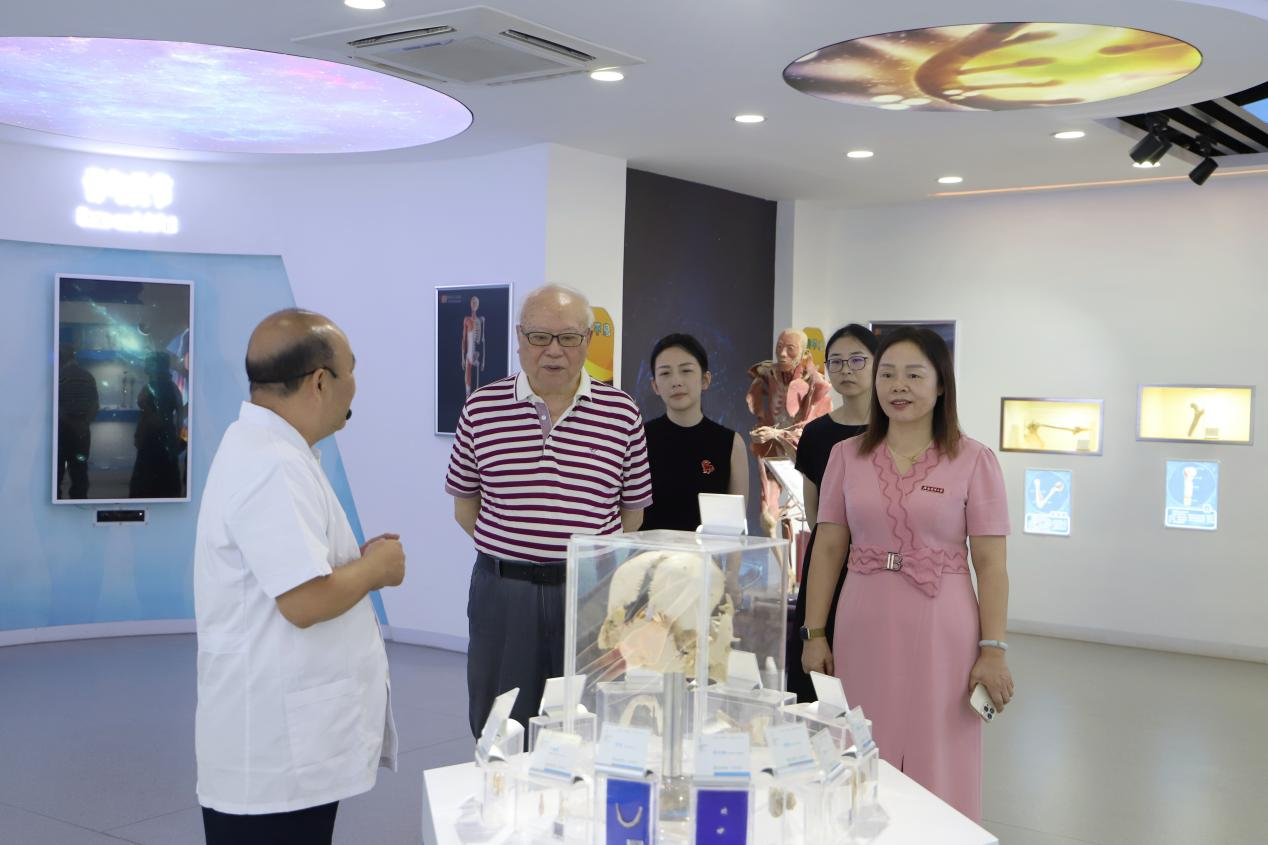 人体生命科学馆是我校打造的以科普和体验为特色的医疗教育活动基地,唐朝枢走进馆内各展区,认真听取讲解介绍,不时向讲解员咨询了解相关知识,对我校建设人体生命科学馆,并向校内外免费开展生命科普教育的做法表示赞赏。