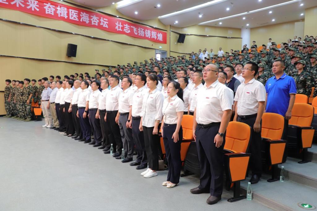 2024级运动康复专业本科1班曾佑杰带领全体新生诵读《医学生誓言》。