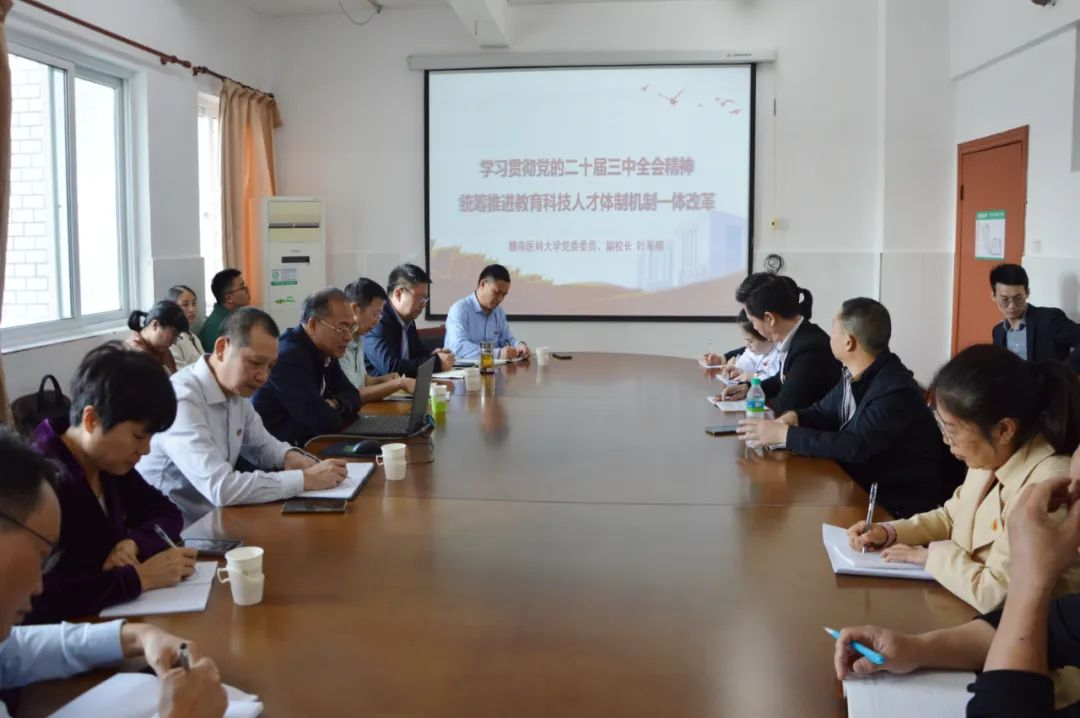 10月24日,学校党委委员、副校长叶军明深入第三临床医学院,为该院师生讲授学习贯彻党的二十届三中全会精神专题党课。该院领导班子成员及党员聆听党课。