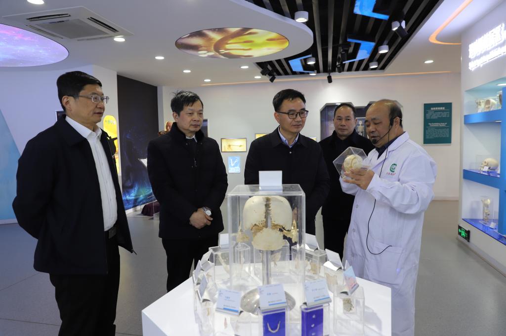 座谈会后,江民强一行还到学校红色卫生史博物馆、人体生命科学馆考察。