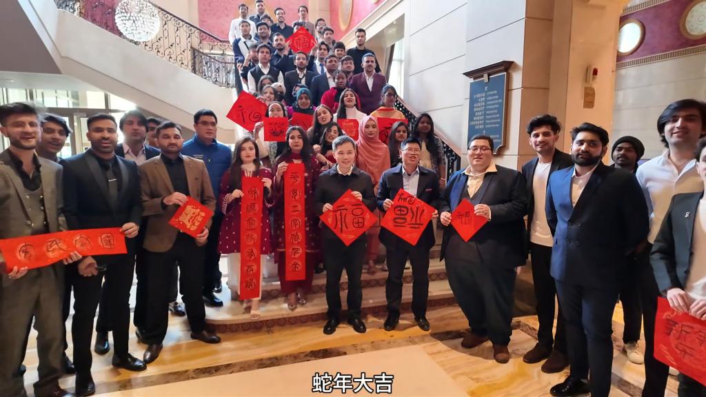1月27日下午,在2025年蛇年春节即将到来之际,为了让外籍师生体验中国新年传统文化和学校的浓浓关心关爱,国际教育学院精心组织了2025年中外师生新春茶话会,学校党委委员、副校长刘志平出席新春茶话会并慰问了留校的外籍师生们。