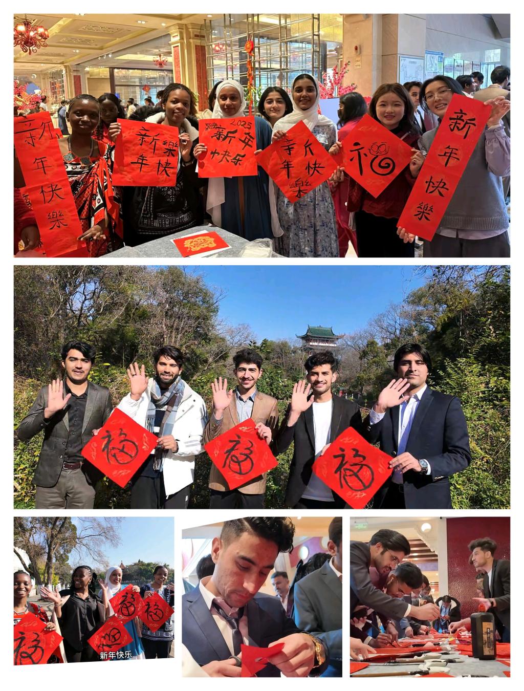 此次中外师生新春茶话会活动分主要为两部分。首先是赣州市八镜台公园的游园活动,中外师生共游古城墙,登八镜台,感受悠悠古宋城文化。其次是新年传统文化体验活动,外籍师生在中国老师的指导下体验窗花剪纸、春节主题拓印、写福字及贴春联等等。活动现场热闹非凡、喜庆洋洋,外籍师生们在欢声笑语中深刻感受到了中国春节及传统文化的魅力。