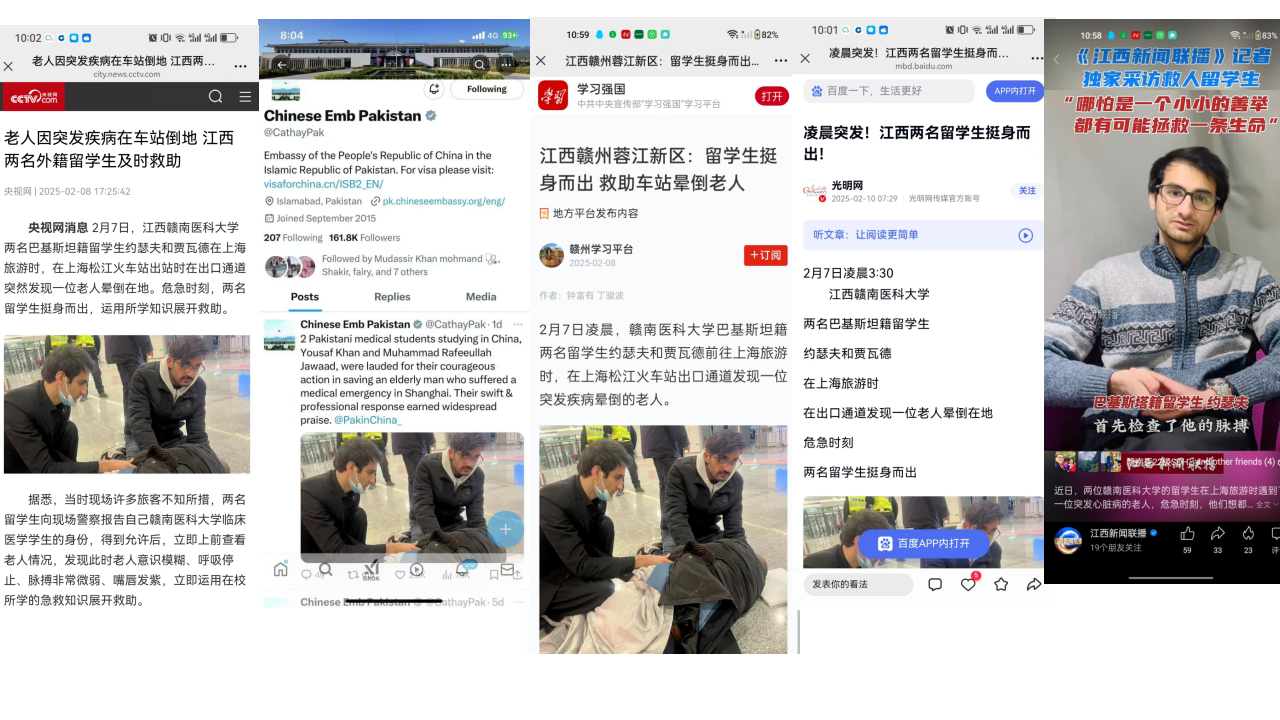 此外,巴基斯坦主流融媒体中巴友谊报(China-Pakistan Friendship)、黎明新闻(DawnNews)、巴基斯坦Startup、DIVA Magazine Pakistan等多家海外媒体也纷纷报道了两名留学生英勇救人的感人事迹,超过40万人阅读和观看了新闻,超过2万了点赞和留言。黎明新闻(DawnNews)更是以突发新闻报道,称两名赣南医科大学两名巴基斯坦青年医学生生动展现了“救援无国界”的大爱精神,展示了巴基斯坦青年的良好形象。